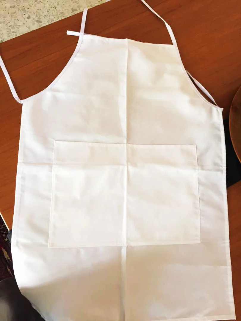 We met at school on Wednesday, and the farewell dinner was the following night, so we needed to work fast! She managed to get some mums to start signing on the apron, and she pinned the sleeves.