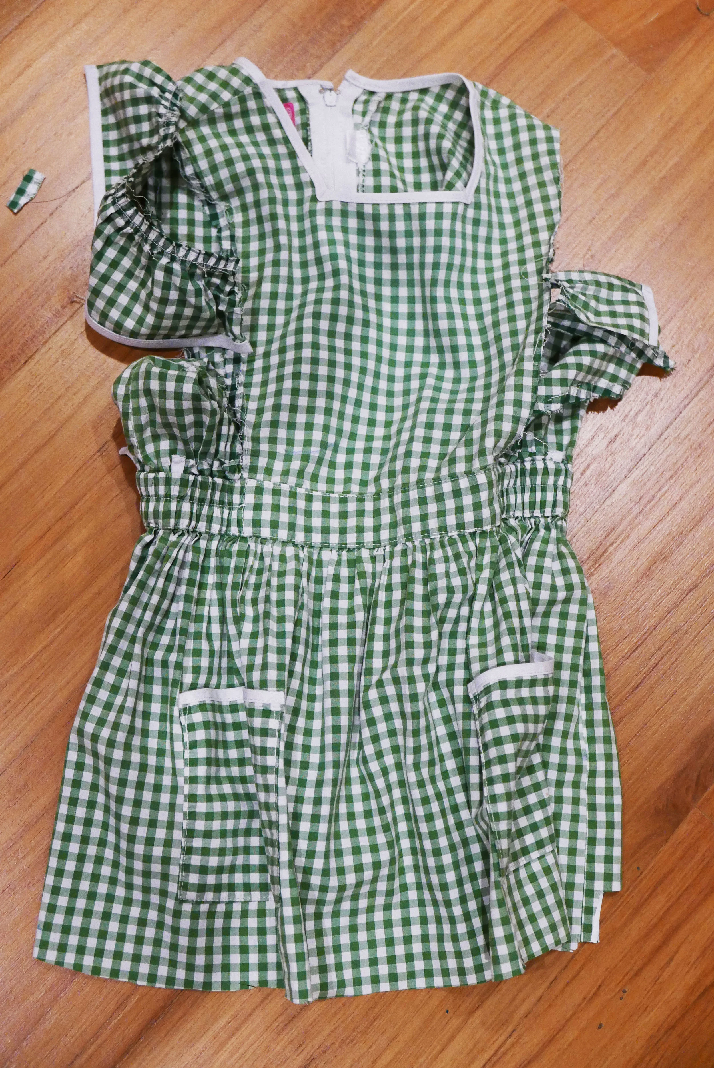 This was the original apron and part of a girls' uniform. Since the fabric is dependent on the uniform, I needed to improvise as I go along.
